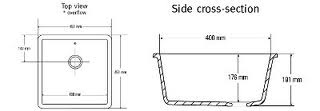 Fregadero Corian. Para integrar en una encimera de Corian sin juntas o en encimera de otro material bajo encimera. Dimensiones exteriores 451x451x191 Dimesnsiones interiores 400x400x176