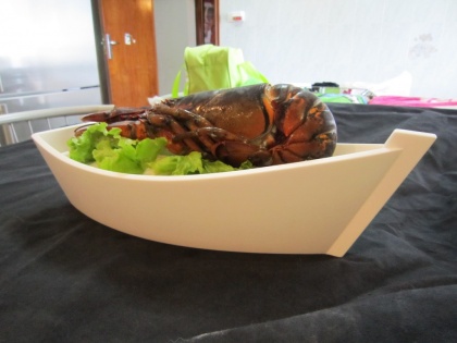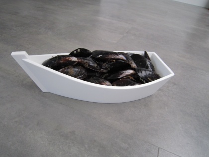 Fuente en forma de gamela, personalizada en parte de atras. Incluye la parrilla superior.